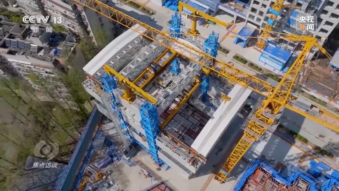 在湖北一家工场,圭表化施工构件由工场分娩托福后,再由高空造楼机像拼积木同样,将它们快速精确吊装。这么安装式一体化的施工边幅,能让单栋楼的总工期从简近两个月。