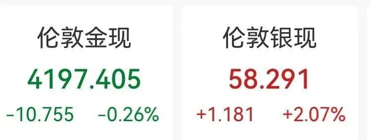 贵金属方面,金价小幅下挫,失守4200好意思元关隘,现货白银涨超2%报58.29好意思元/盎司。