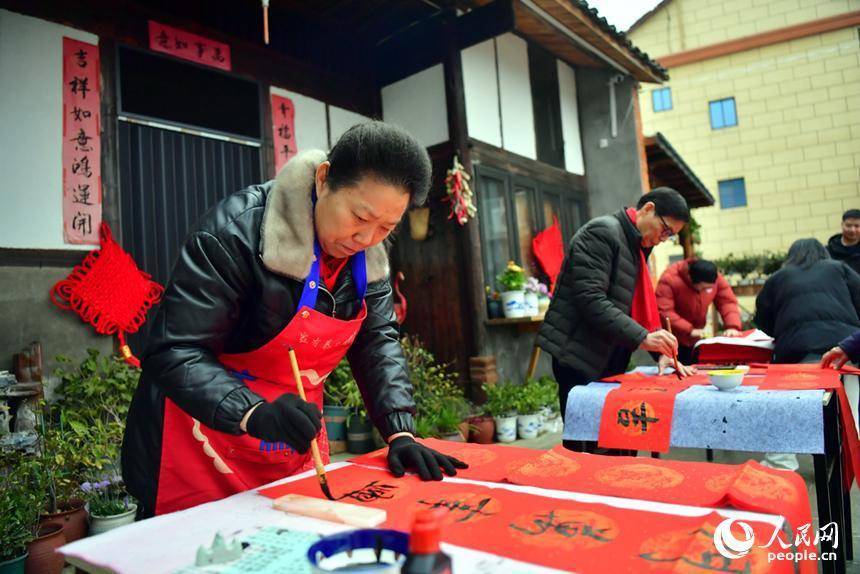 江西省南昌县塔城乡湖陂村飘溢着新春的氛围,书道家们在村中为村民们写对联。东说念主民网记者 时雨摄东说念主民网南昌2月11日电 (记者时雨)春节相近,江西省南昌县塔城乡湖陂村飘溢着新春的氛围,书道家们挥毫泼墨,一幅幅饱含祝愿的对联鱼贯而来。现场,书道家还关注地教旅客持笔运墨,体验书写“福”字的传统乐趣。