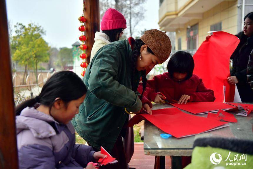 村民与孩童们好奇盎然地剪制窗花。东说念主民网记者 时雨摄