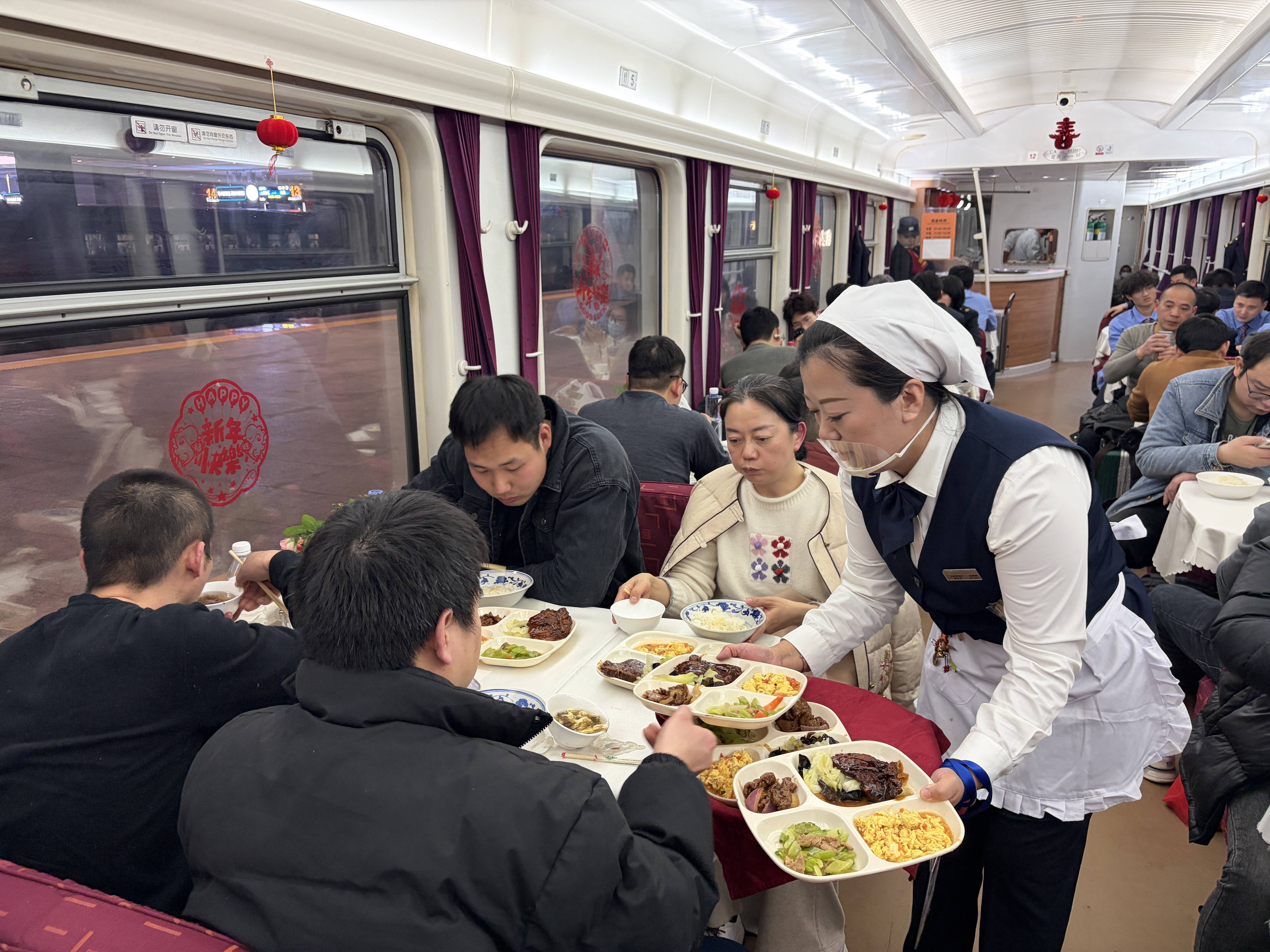 “饭来咯,民众当心。”跟着餐车做事员的吆喝,锅气十足的饭菜被端上餐车的餐桌,乘客们大快朵颐,还有东说念主到吧台买上啤酒饮料。“一口酒、一口菜,酒足饭饱后,再到卧铺好意思好意思睡上一觉,就能到达方向地,我合计坐绿皮车很惬意。”乘客杨琼说。