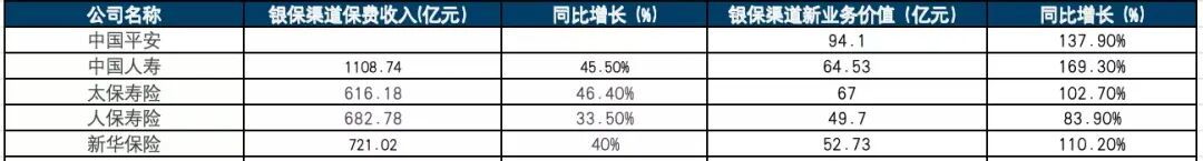 年报数据自大,中国东谈主寿的银保渠谈灵验说明政策发展作用,总保费初次破裂千亿元;中国祥瑞寿险及健康险业务银保新业务价值同比增长138%,中国太保、中国东谈主保、新华保障银保新业务价值同比翻倍。