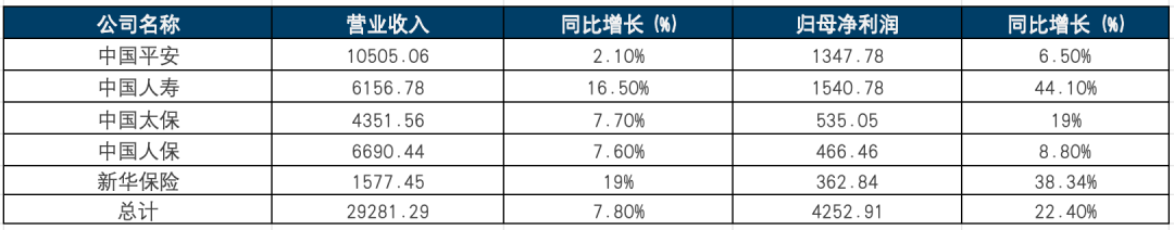 图1:A股五家上市险企买卖收入、归母净利润数据一览(单元:亿元),凭据年报数据统计